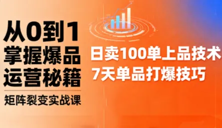 帮助你你从0到1掌握爆品运营秘籍。上部两周半聚焦爆品矩阵开店,通过3天魔鬼集训+实操,快速学会日卖100单上品技术,掌握定价心理学、蓝海产品挖掘及月销1万到100万滚雪球模型;下部两周半专攻短视频带货,拆解7天单品打爆技巧,涵盖看后搜推广、达人运营与短视频矩阵裂变,让你快速建立标准化爆品运营体系。